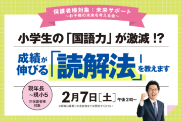 お子さまの読解力に不安に感じることはありませんか? 今回の【お子様の未来を考える会】では、こんな疑問 … 詳しく見る>>