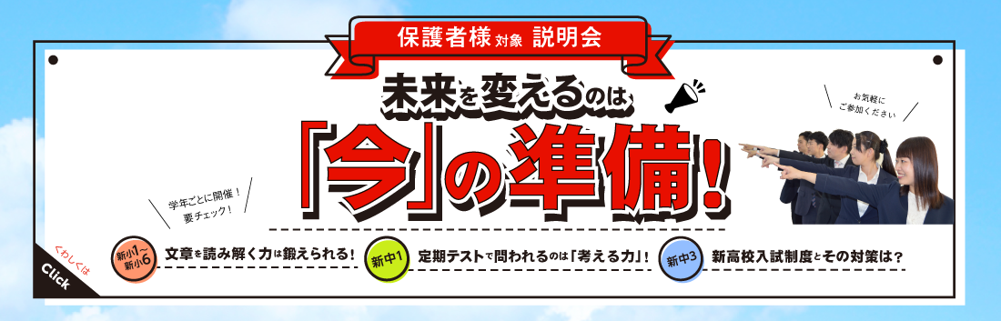 新小1~6 / 新中1 / 新中3 保護者様対象 説明会 >>
