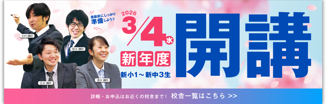 サイエイの春期講習会は3/26(木)スタート!! 年間70時間の厳しい研修を受けた正社員講師が、熱い … 詳しく見る>>