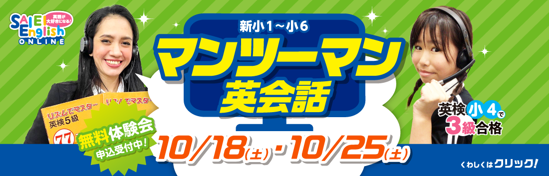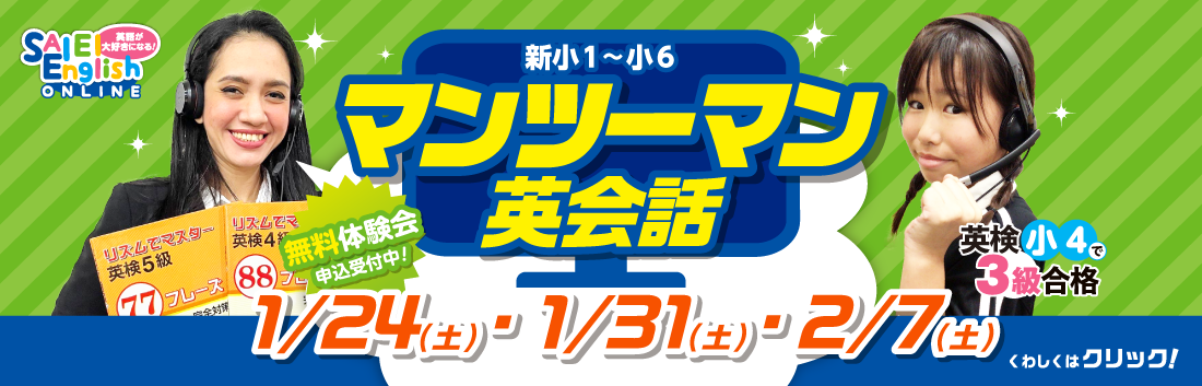【マンツーマン英会話】無料体験会申込受付中! >>