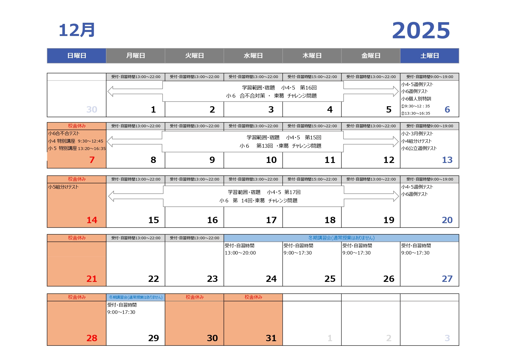 新年度に向けて以下の日程で開講説明会を行います。中学受験を始めてみようとお考えの方、どうしようか迷っている方はぜひご参加ください。当校舎の特長や取り組み、日程などご説明致します。