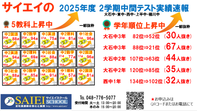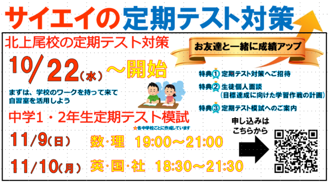 定期テストに関する詳しい内容の説明を希望される方は、サイエイスクール北上尾校までお問い合わせください。