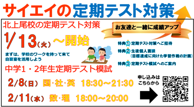 学年末テスト対策1/13(火)~開始