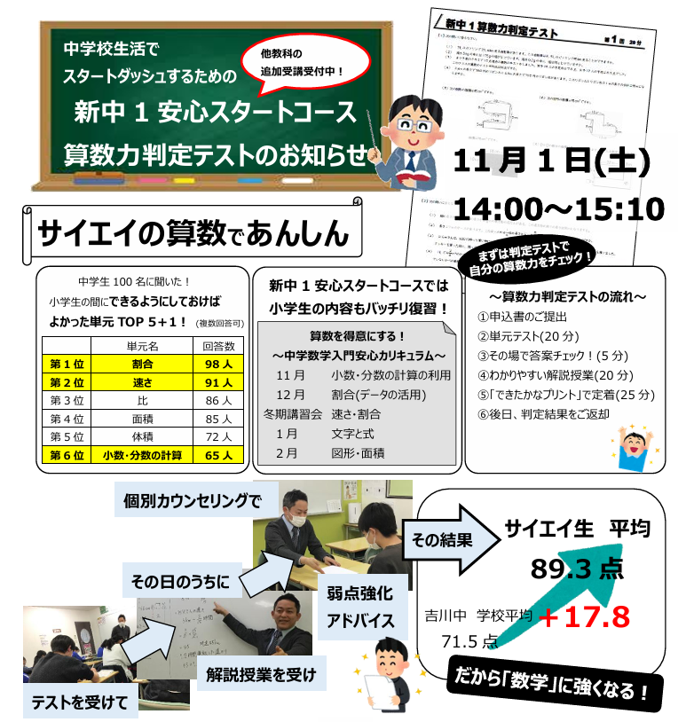 サイエイスクール吉川美南校ではどこよりも早く期末テスト対策に取り組んでいます!