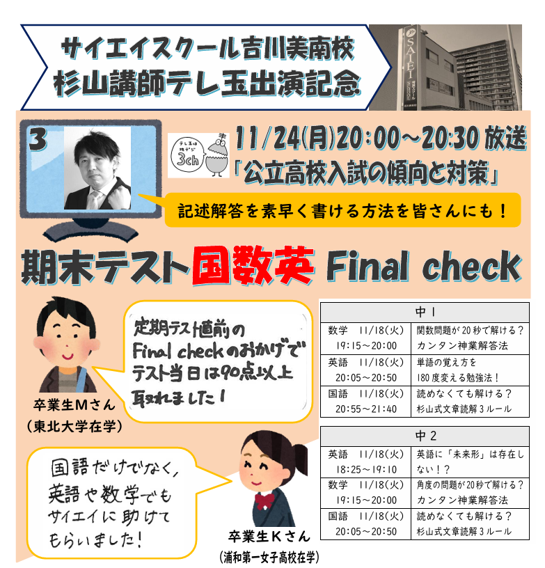 テレ玉「公立高校入試の傾向と対策」が放送されました。