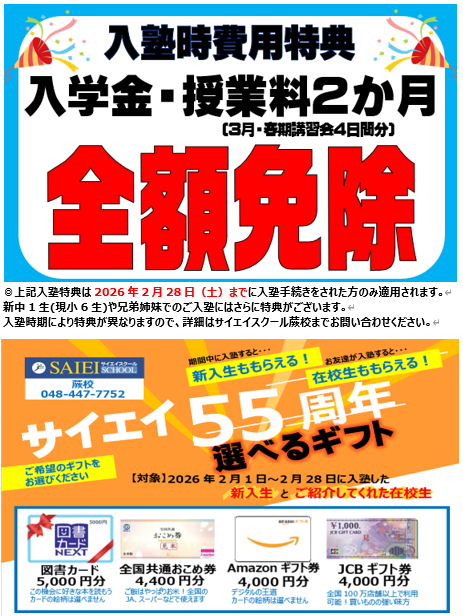サイエイスクールは2026年で55周年!55周年を記念した入塾特典をご用意しました!