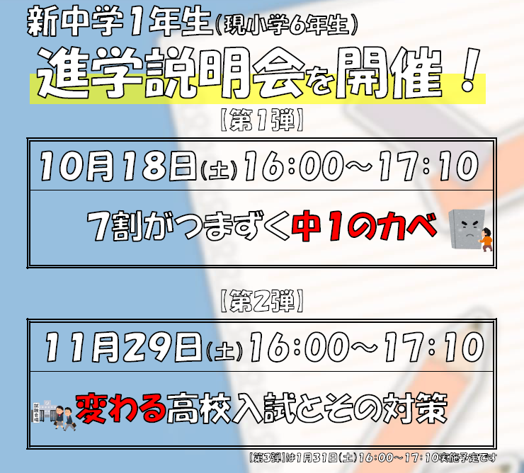 現小学6年生保護者様対象新中1進学説明会開催!!