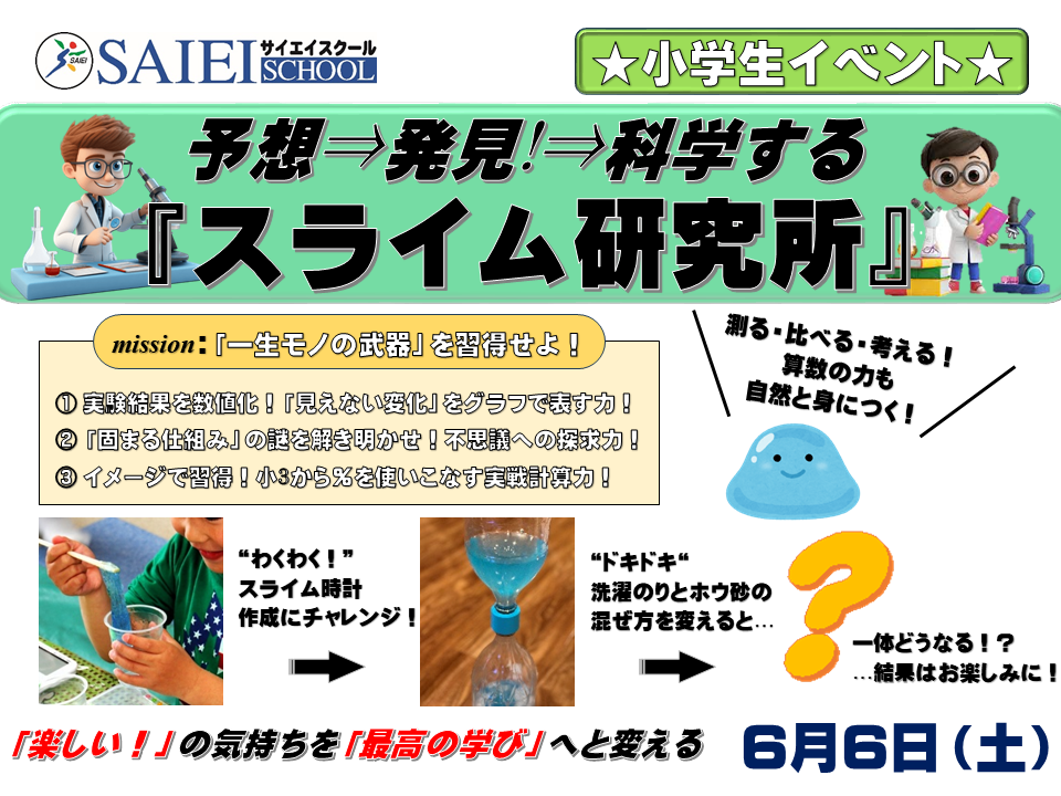 「遊び」が「最高の学び」へ変わる絶好のチャンス!ぜひ、サイエイで「最高の学び」を経験してみませんか。